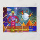 It's a third encounter of the brightly coloured, mysterious, and whimsical kind with these winged ancient alien astronaut angels ascending towards the heavens. The extraterrestrials take spiral flights about the mythical pyramids spreading fantastic vibrant spiritual symbols about the landscape. Original artwork by graphic artist Ken Elmer.