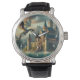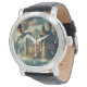 This is a Very Cool Ancient Castle Under Attack from a Flying Dragon Wrist Watch. Digital Painting.