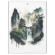 A beautiful clipboard showing an ink illustration of a landscape with ancient Chinese architecture and majestic waterfalls.