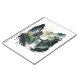 A beautiful notebook showing an ink illustration of a landscape with ancient Chinese architecture and majestic waterfalls.
