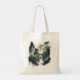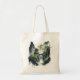 A beautiful budget tote showing an ink illustration of a landscape with ancient Chinese architecture and majestic waterfalls.
