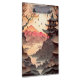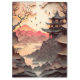 A beautiful brown clipboard with a paper cutout scene depicting ancient Chinese building, trees, mountains and lake.