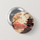 A beautiful brown round button with a paper cutout scene depicting ancient Chinese building, trees, mountains and lake.