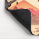 A beautiful brown mouse pad with a paper cutout scene depicting ancient Chinese building, trees, mountains and lake.
