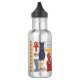 This water bottle is ready to be personalised with a name in light blue lettering set inside and Egyptian cartouche style frame. The name accompanies a collage of graphics inspired by ancient Egypt. My illustrations depict the god Thoth, the cat goddess Bastet, the sacred scarab beetle, the sign of life, Queen Nefertiti, King Tut, Anubis and more. Illustrations are in shades of blue, orange, red, yellow and brown on this water bottle.