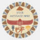 This round sticker is ready to be personalised with a your own custom message. It accompanies a collage of graphics inspired by ancient Egypt. My illustrations depict an Egyptian pyramid, a winged scarab beetle, a sign of life motif, a wedget eye motif and a falcon motif all set against a sand coloured background and surrounded by a lotus shape frame.