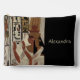 Dramatic design with ancient Egyptian hieroglyphics. Depicts a pharaoh or goddess.