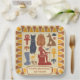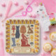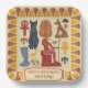 Add your own message to create personalised party supplies with an Egyptian theme. These paper plates feature a collage of different illustrations inspired by the artwork of ancient Egypt with your own custom message inside of a cartouche shaped frame. Graphics in yellow, orange, red, brown and blue are set against a light sand coloured background.