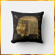 Ancient Egyptian face mask adorns this gorgeous black throw pillow.