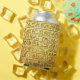 A yellow can cooler with ancient hieroglyphs engraved on stone. Great as a utensil holder too!