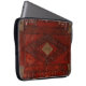 Dating back to the middle ages this old book cover is full of character with brass fixtures and worn ruby red leather.