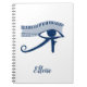 Personalised notebook featuring a stylised blue Eye of Horus amulet. Add your own name or message to personalise.