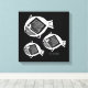Ancient fish white ink black canvas print