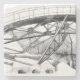 Pencil drawing.Artist by Zolotareva. Black White Monochrome Modern trendy pencilart. There's a beautiful bridge over the pond.