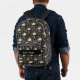 Ancient-looking and worn beige skulls amidst a beige and silvery-grey damask pattern creates a dramatic, Gothic backpack. Personalise with your name in a black band across the front.. Perfect for home or school.