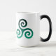 Green Triskele symbol. The Triskele or Triskelion symbol consists of three interlocked spirals or three arms as if it is moving from its centre. This Celtic symbol of movement or action represents the three worlds; the celestial, physical, and spiritual.