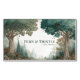 Step into a realm of ancient lore and majestic beauty with this classic fairytale business card. The design is framed by two magnificent, ancient trees whose sprawling canopies create a natural archway, inviting you into a world of timeless wonder. Below their sturdy trunks, a detailed forest floor gives way to a sweeping vista of a serene woodland valley and misty mountains in the distance, creating an incredible sense of depth and adventure. The painterly, illustrative style and the rich, earthy colour palette of deep teals and warm browns evoke the feeling of a classic storybook or a high fantasy landscape. This is a design that speaks of wisdom, endurance, and natural elegance.