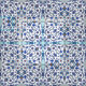 Ancient Handmade Blue Turkish Floral Tiles Pattern Fabric