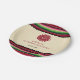 The colours and pattern of a typical Mexican serape are featured on this Cinco de Mayo party plate. The colourful stripes border a speckled cream panel with customised Cinco de Mayo party information. An ancient Mexican sun ornament is prominently added at the top for accent. Available with matching products.