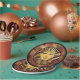 Unique designed paper plates that will lighten up any Egyptian theme party. These paper plates have a printed image of an acrylic painting of an Ancient Pharaoh King. The background has a soft glow of round circles. Each plate is trimmed in black.