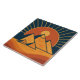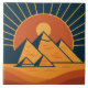 Adorn your walls or tabletop with the Ancient Pyramids Majestic beauty of this stunning Ceramic Tile Art. This captivating tile features a bold, retro-style illustration of the pyramids at sunset, utilising a rich, dramatic colour palette of navy blue, burnt orange, and gold.