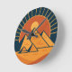 Track time with the Ancient Pyramids Power of this stunning Round Wall Clock. This captivating timepiece features a bold, retro-style illustration of the pyramids at sunset, set in a dramatic colour palette of navy blue, burnt orange, and gold, making a striking statement piece.