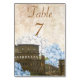 A lovely image of the Colosseum and the Arch of Constantine in Rome from a Baroque painting along with beautiful blue and white vintage hydrangeas on a textured background with a faint hint of vintage damask and scrollwork make a beautiful romantic wedding table card. Matching items and other vintage Rome designs are available in my Zazzle store.