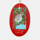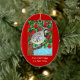 Based on the well-known Christmas carol, "The 12 Days of Christmas," this whimsical image features a beautiful plump partridge, wearing a holiday hat, sitting in a highly-detailed pear tree full of Christmasey red pears. This version of the ornament includes the text "And a Partridge in a Pear Tree."