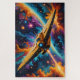 A star ship turns on the afterburners as it heads for a distant star in a galaxy of vivid colours on this science-fiction themed jigsaw puzzle.