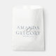 This chic and elegant favour bags features a sophisticated design with the couples' names in a classic serif font and a beautiful script font reading "And" connecting their names. The blue colour palette can be customised to your wedding or event colours. These favour bags are perfect for a wedding or anniversary.