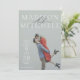 This chic and elegant engagement party invitation card features a full page photo and a sophisticated layout with the couples' names large and a beautiful script font reading "And" connecting their names. The engagement party details are shown on the left side of the card in a unique display emphasizing the date of the party.