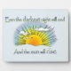 A lovely rainbow gradient sunrise decorated by a few clouds on a pale blue background, that reads Even the darkest night will end, and the sun will rise.