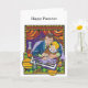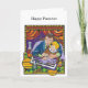 The Passover seder is a time when parents tell their children about the exodus of the Israelites from Egypt, freeing them from slavery. This card shows a father teaching his daughter at the seder table, surrounded by Passover items like matzah and the haggadah.