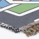 A quality printed throw has its advantages. This is a much finer weave throw than its loopier cousins, and though lighter, it is worth the investment for custom room accessorizing. The back is much prettier than the typical brown, and the fringe on the long sides very vivid, the selvage nicely done. Before photographing, I washed the throw in cold water, delicate, with a thicker woven throw the same size. On tumble dry low, this throw was dry in half the time as the other. This is a very practical quality if you use throws for furniture covers or to wrap up in frequently. The sleekness of the fabric makes it a great layer for accenting or protecting without the feeling of sitting on too much stuff. Perfect for napping or when you feel a light chill coming on. The color printing is beautiful and on this fabric, matched the design and color of my Photoshop image. This is an advantage for blending room fabrics and colors. The fringe on the short sides prints the colors from the design image and therefore varies from the side fringe. I streaked a white fractal line through the plaid pattern to give the illusion of weaving. This printed as crisp as an illusory thread, and put some white in the short side fringe, showing another advantage of print vs loomed- for artistic purposes, line lines, detail, and color integrity can be planned and preserved. My loomed throws have color limitations and more of a needlepoint texture. Print throws reproduce an exact image. The throw felt a little stiff straight out of the package, but this went away in the first delicate wash. Of course I searched the wash water for ink or bleeding and there was none.