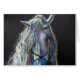 The flowing mane marks the unmistakable look of a dressage horse! Colourful pastel on black.