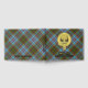 Clan Anderson crest badge surrounded by a strap and buckle over tartan background. Custom front, back and spine text.