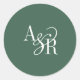 ANDREA Dark Green Modern Simple Wedding Monogram Classic Round Sticker