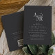 The dark and elegant design features a fancy script monogram in grey and white with a unique moody feel.