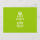 Your personalised Keep Calm saying on a fine custom android green style decor. A personalised Keep Calm style saying on a one of a kind gift. Humourous or whimsical try on your creative words on two editable lines of text. Remember to use CAPITAL letters for best results.