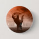 An android hand buried in the ground while an old destroyed and abandoned city looms on the horizon.