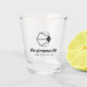 Andromeda Night Club shot glass. Black text, and logo with transparent background.