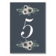 Chic smoky gray blue table number cards feature two groupings of cream colored anemone flowers and dusty sage green eucalyptus branches in sheer watercolor. Design repeats on reverse side. Coordinates with our Anemone and Eucalyptus wedding invitation suite.