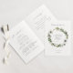 A beautiful folded wedding program perfect for a winter wedding, featuring a watercolor floral wreath of anemones and greenery and a light grey ampersand.