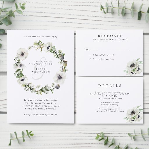 Anemones Floral Wreath Winter Folded Wedding Programme