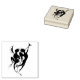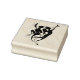 Unusual, monochrome wood art stamp with an elegant angel and devil silhouette illustration.