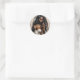 Stickers feature classic oil painting style artwork of a black woman angel with eyes closed and palms together in prayer position. She has long, wavy dark hair and rich brown skin. The angel figure is wearing a draped white dress and has large white wings with feathers. Melanin angelcore portrait with an African diaspora appearance (African American, Caribbean, Afro-Brit, etc.).