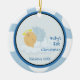Want to always remember your baby's first Christmas for many, many years to come. Buy this ornament to hang year after year on your tree. It has a light blue centre with a baby angel lying on a cloud on it. The angel has blue wings. It has large white dots on a light blue background. Personalise with a name and a year. Check out the many other ornaments and products we have. ©JW Illustrations