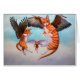 Two tabby angels with hawk wings play chase with a mouse through the clouds.