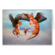 Two tabby angels with hawk wings play chase with a mouse through the clouds.