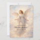 Designed for memorial services, celebration of life ceremonies, and funeral gatherings, the invitation balances emotional warmth with clear, respectful presentation. The angel artwork provides a calming presence without being overly religious, making it suitable for a wide range of personal beliefs.